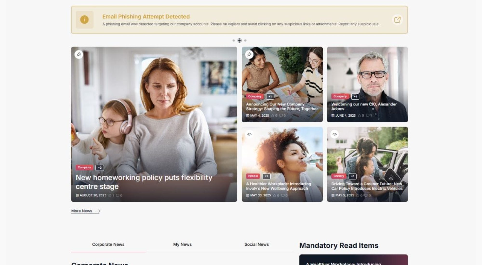Involv is designed for internal communication and HR teams to manage content without IT support.