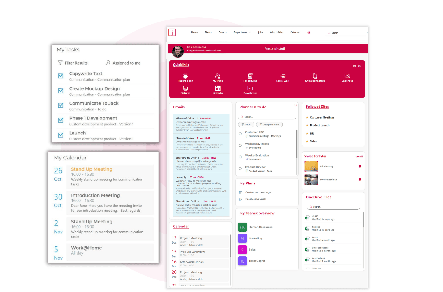 Involv delivers a feature-full employee portal that offers everything your employees need for their best workdays. For example, Involv’s ‘My Page’ is a well-designed and comprehensive overview page containing a wealth of personalized information like news, links to your recent documents, collaboration sites and productivity apps, an overview of your tasks in Microsoft Planner, and more.