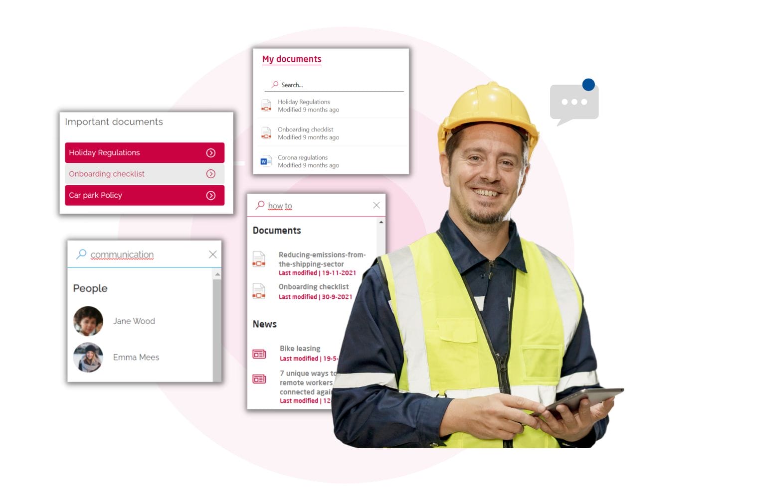 For non-desk-based staff who regularly work in the field, such as sales or operations staff, an intranet with a mobile app is an ideal way to make sure they stay connected to company news, documents, people directory, meetings and email wherever they are. Push notifications are also a useful way to alert field-based employees about important updates.